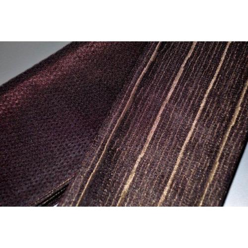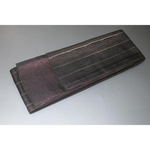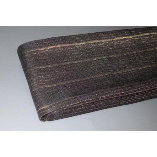 こちらのお品は、高級化繊西陣織の角帯です。色柄は墨黒に黄金色の矢鱈縞に裏は紅下黒のような趣の梨地織です。色味が難しいため現物優先でお願いします。