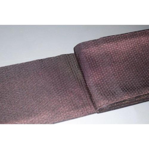 化繊ながら綺麗で洒落た帯です。普段、化繊の角帯はあまり出しませんが、現代は化繊は洗えて重宝しますのでいい品だけ少量出品します。安物の化繊の角帯ではなく、絹と遜色ない拵えです。家庭で洗濯も可能。よく、とにかく絹にこだわる方がありますが、汗に絹の帯は危険で、汗ジミになりやすいですが化繊は心配いりません。絹の帯でじっとり汗ジミではみっともないですから、うまく使って頂くことをお薦めします。女性の袴下帯としてもいかがでしょうか。