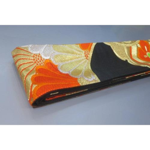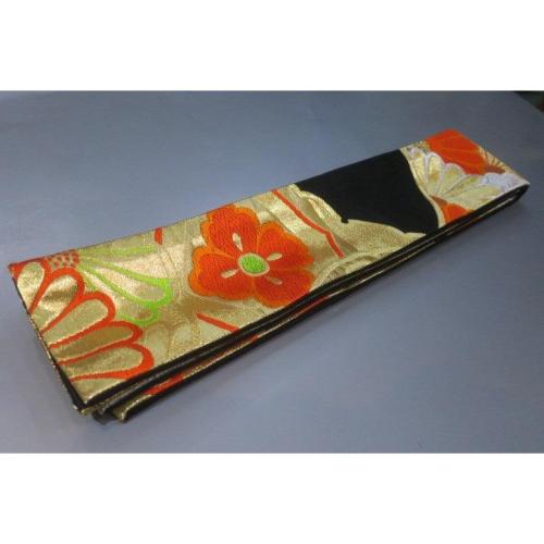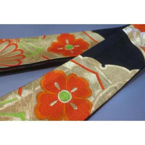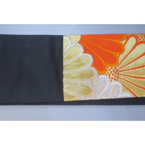 弐11043RM 男角帯 本絹西陣織К黒地金襴縫い取り菊花菱の図 新品 豪華な織 別誂え