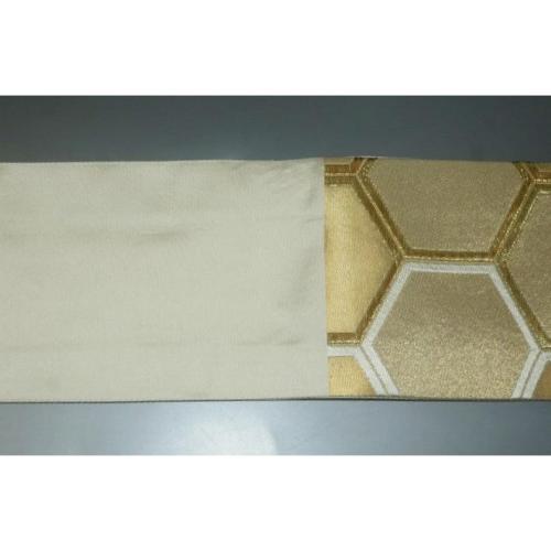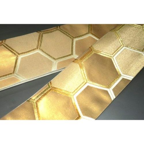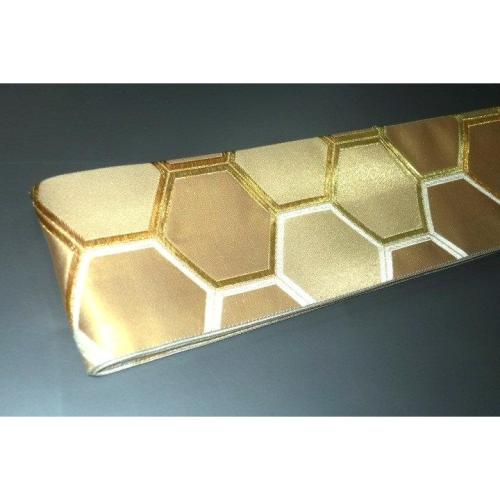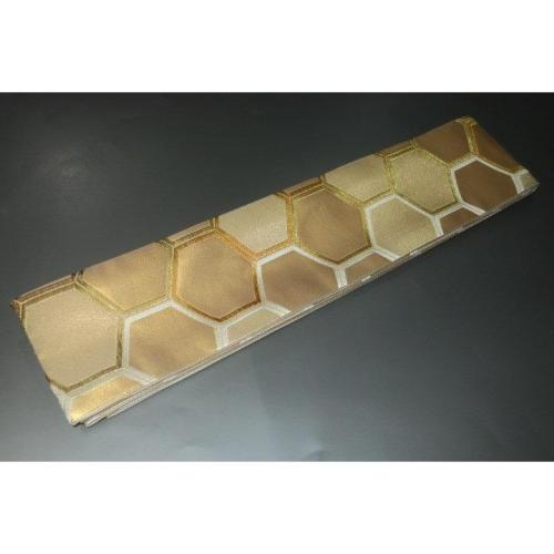 弐11181RM 男角帯 本絹西陣織金襴角帯К地金色に亀甲文様 素晴らしい 別誂え