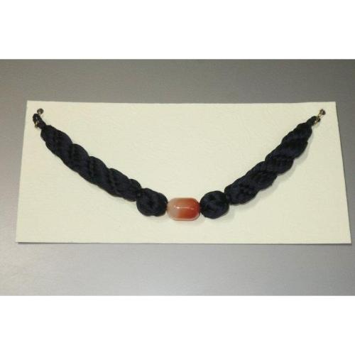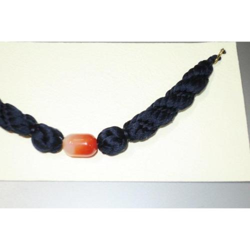 こちらのお品は、縞瑪瑙を使用した羽織紐です。中央の縞瑪瑙は曙暈しで、紐は紫紺のねじり組紐を使いました。色味が難しいため現物優先でお願いします。組紐の部分は京都の組紐屋が謹製ものしっかりできています。実に豪華な拵えで、どんな着物も豪華になると思います。