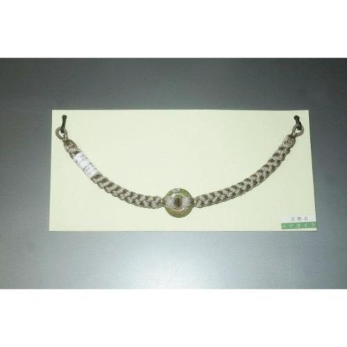 こちらのお品は、天然石を使用した羽織紐です。中央の天然石はユカナイトで、紐はシャンパンベージュの細ねじり紐を使いました。中央のリングを左右対称にする鸚鵡拵えです。色味が難しいため現物優先でお願いします。
