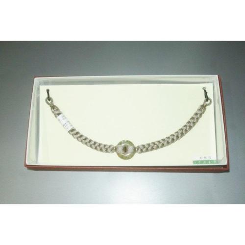 紐は片方は約9cm、全長21cm位です。中央の細工は外せませんので、付け外しは左右の鐶で行ってください。