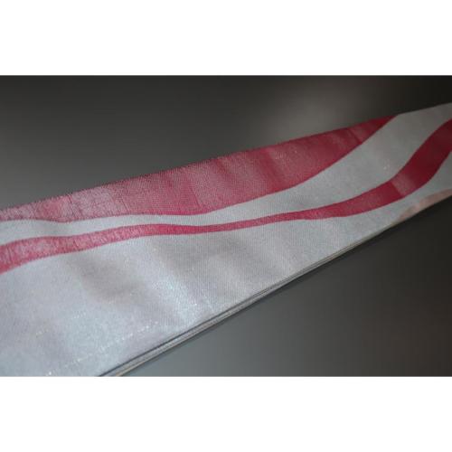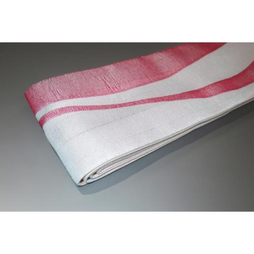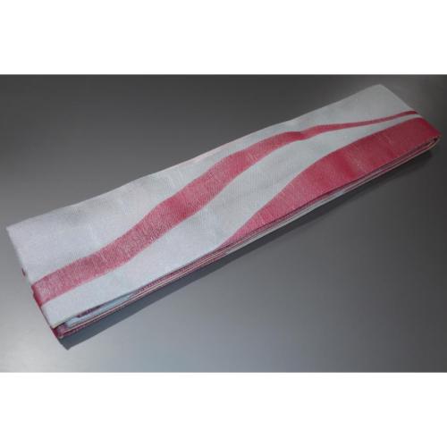 弊社で誂えた帯でお仕立て上がりの新品です。縫製を変えたので拵えが良くなりました。交ぜ織りですが、縦が化繊、横が絹、締めると逆です。ほとんど絹の品です。
