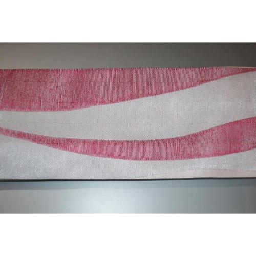 こちらのお品は、絹交ぜ織り西陣織繻子の角帯です。色柄は緋桜流線形に灰銀と芭蕉色金筋縞で、全通のお仕立てです。裏の芭蕉色の金筋の縞もなかなか良いです。ヒーロー色。色味が難しいため現物優先でお願いします。