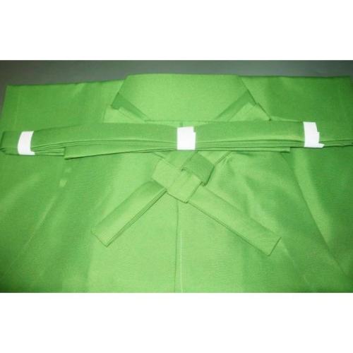 本体の色は若竹色の無地で、織感はふわっとしたお召調です。仙台平のような突っ張るような生地ではありません。緑系は色味が難しいため現物優先でお願いします。