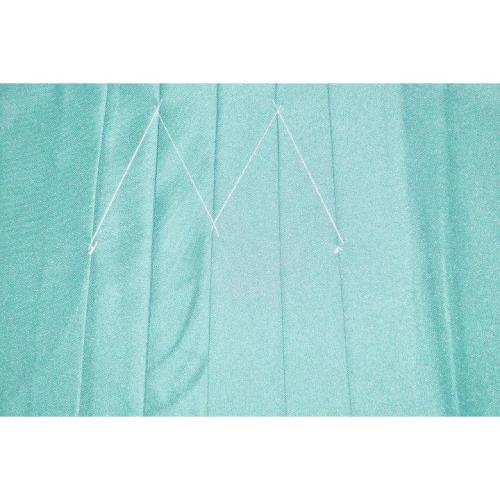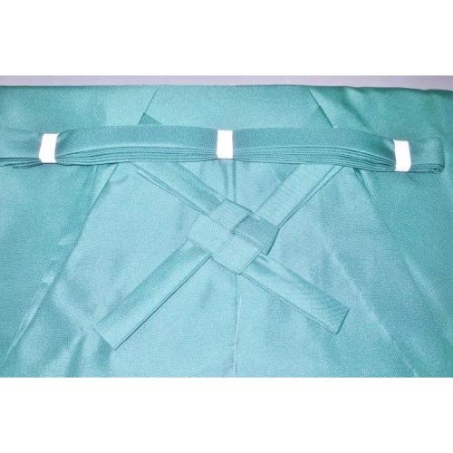 本体の色は水浅葱の無地で、織感はふわっとしたお召調です。仙台平のような突っ張るような生地ではありません。緑系は色味が難しいため現物優先でお願いします。