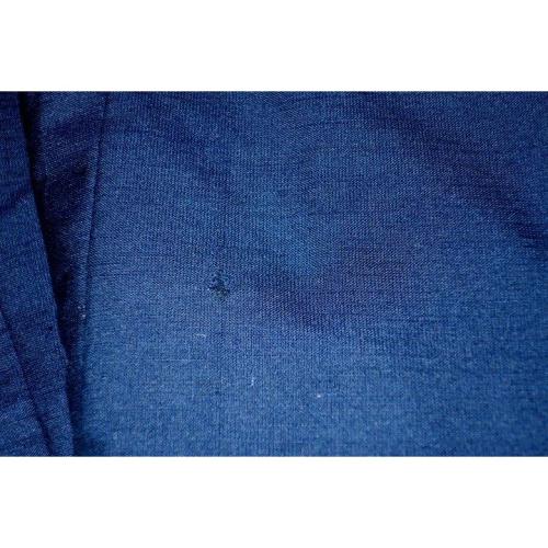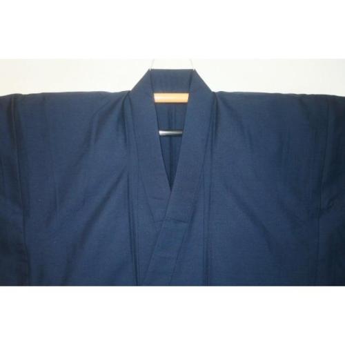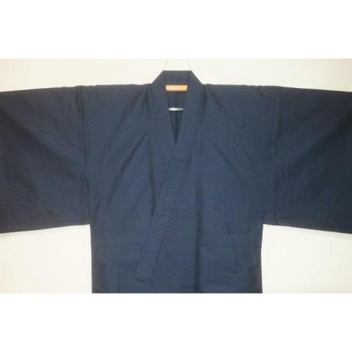 こちらのお品はシルクウールの着物です。仕立ては単衣ですが通年用で夏物ではありません。弓道向きに袖丈・袖付けを調整しました。状態は元は新品ですが袖付けにスジ消しの跡と少し織ムラがあります。色は藍紺系です。色味が難しいため現物優先でお願いします。