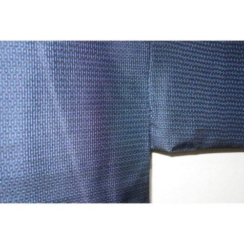 こちらのお品は本絹泥藍大島紬、百山亀甲の着物です。仕立ては袷で、袖丈・袖付けを調整しました。状態は中古ですが綺麗です。色は藍色系です。色味が難しいため現物優先でお願いします。袖の調整地に元の縫製部分のスジ消しがあります。ご了承ください。胴回りに対して裄を出していますので袖付けはやや斜めになります。