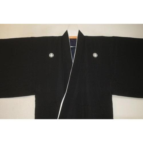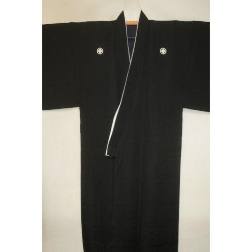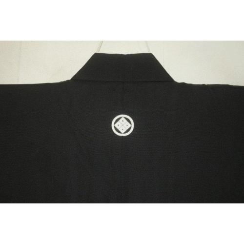 拾10380【新企画・男の弓道用高級着物】本絹羽二重 黒紋付着物 裄71丈150К 丸に隅立て四ツ目