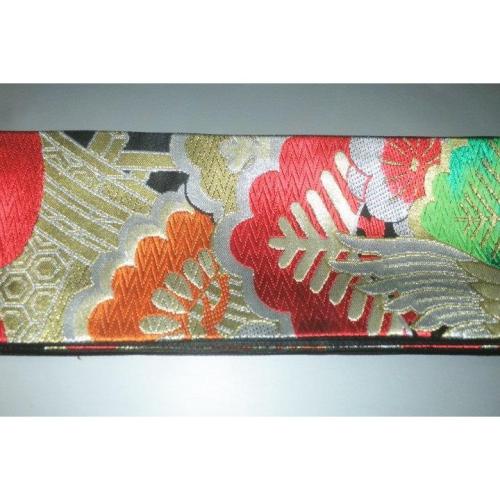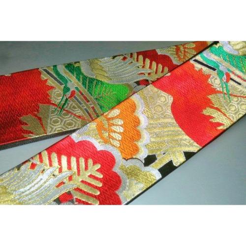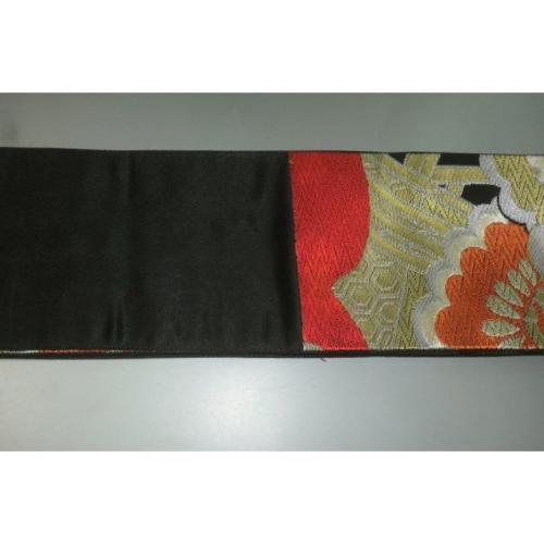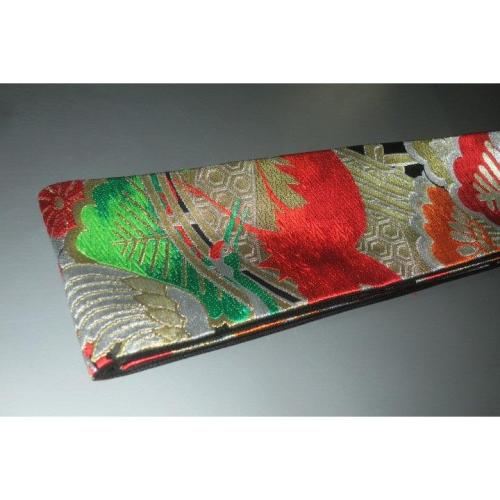 弐11314RM 男角帯 本絹西陣錦織К黒地金襴・御所解き鶴松 おめでたい 金属糸使 用 別誂え