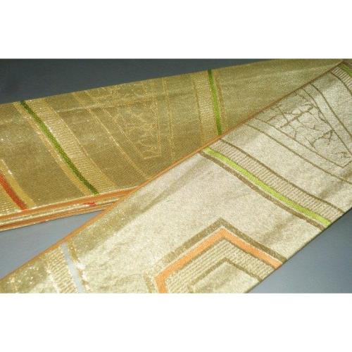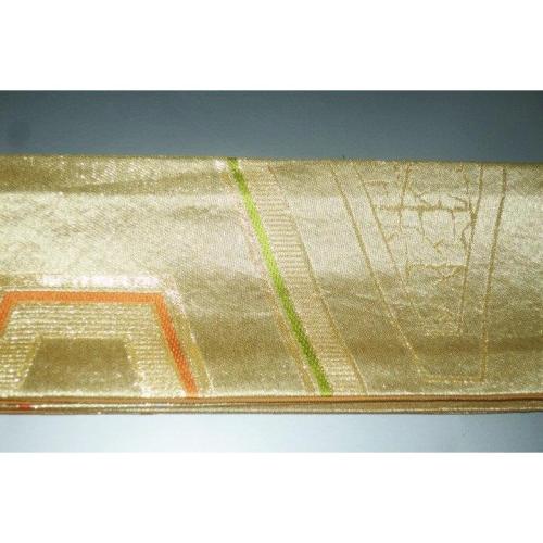 こちらのお品は、本絹西陣織の角帯です。お仕立ては片側六通で、織は沈金色地箔引き重ね亀甲です。色味が難しいため現物優先でお願いします。