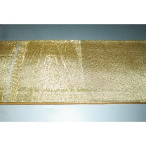 弐11331RM 男角帯 本絹西陣織 К沈金色地箔引き重ね亀甲文様 極上新品 金属糸使用 季節の帯に