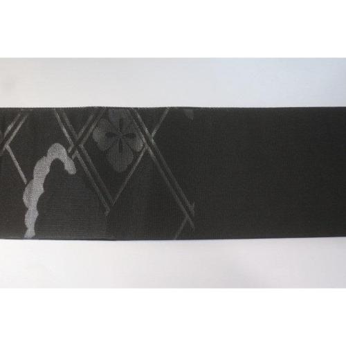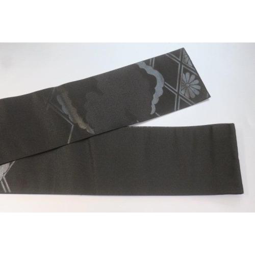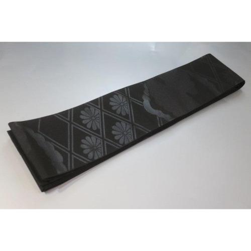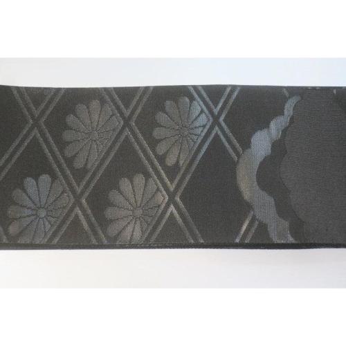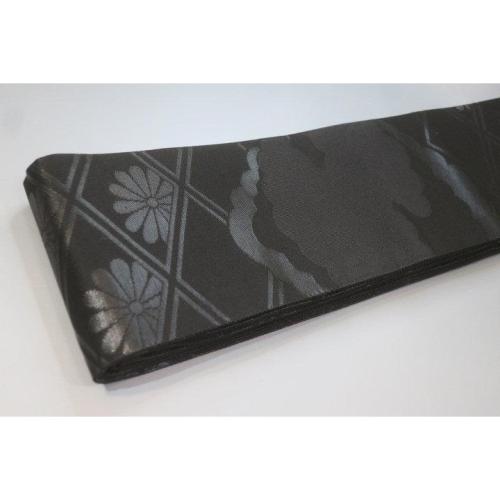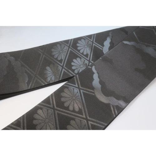弐11381RM 男角帯 本絹西陣織黒繻子 К 有職菊に雲 新仕様 新品 素晴らしい 漆箔 別誂え
