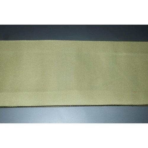 こちらのお品は、本絹西陣織練貫の角帯です。仕立ては片側六通で、織り柄は柿色地金襴の御所解き扇面平安絵巻文様です。色味が難しいため現物優先でお願いします。