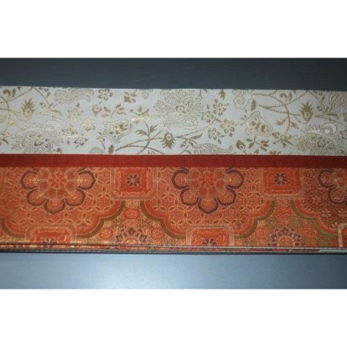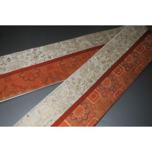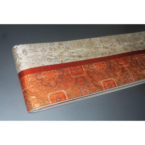 こちらのお品は、本絹西陣織の角帯です。六通のお仕立てです。織り柄は唐織りシルクロード果樹文様、切り返し仕立てです。色味が難しいため現物優先でお願いします。