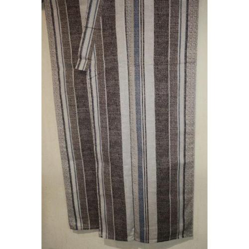 こちらのお品は、遠州綿紅梅の生地から仕立てた物です。状態は仕立て上がりです。ミシン手縫い併用のサンプルですが本格仕立てです。織は綿紅梅で織感も素晴らしい。縫いの手法が気になる方でも、これならいいと思います。私は問題ないと思います。長襦袢をつければ単衣に、つけなければ浴衣になります。滅多に出ない高級生地からの仕立てです。お見逃しなく。「幻の世界」に続く「ハイライン・空中庭園の世界」第一作は、摩天楼や廃線を思わせる縞とビルのグレー、空を思わせる水や青、ハイラインの世界、如何でしょうか。