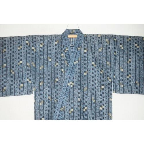 弐11524RM 遠州木綿紅梅 男着物単衣浴衣 裄71丈147К青藍の二重ロウケツ染調 新品 大人柄