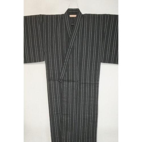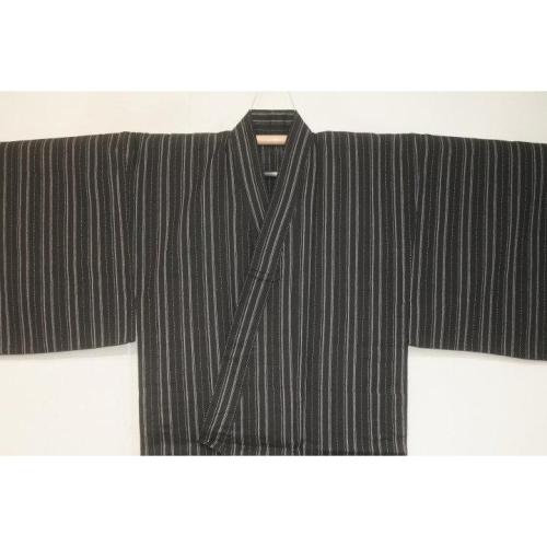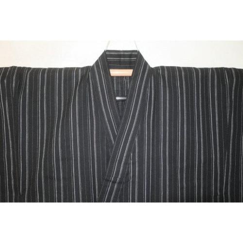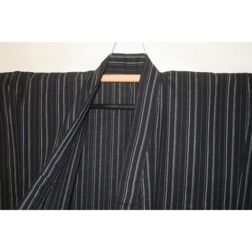 こちらは、綿麻近江上布の着物の単衣です。状態は仕立て上がりサンプルです。ミシン手縫い併用でサンプルのため少し粗いところがありますが問題ない程度です。呉服と比べて云々したい方や当社の姿勢に理解のない方は入札しないでください。織は透かし織でややざっくりした風合いです。縫いの手法が気になる方でも、これならいいと思います。私は問題ないと思います。長襦袢をつければ単衣に、つけなければ浴衣になります。お見逃しなく。黒地にスジ縞飛白。