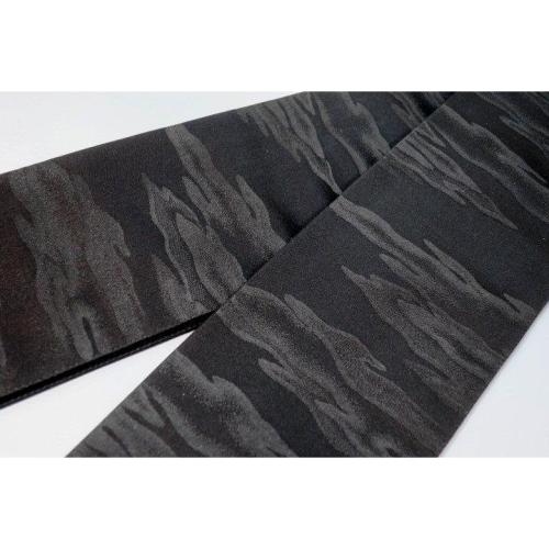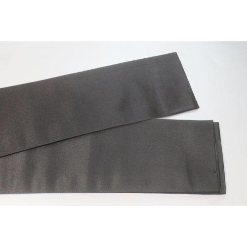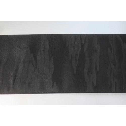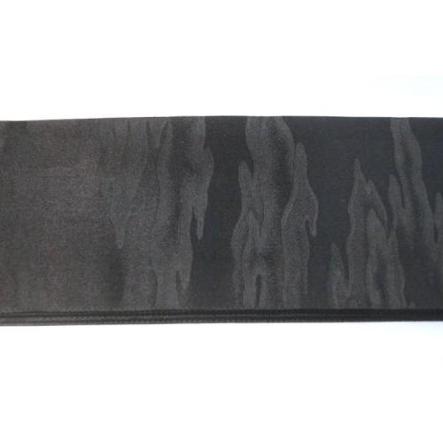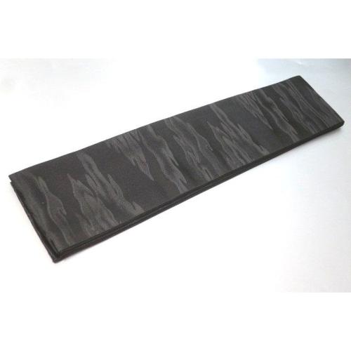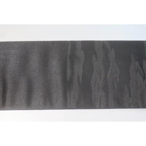 こちらのお品は、本絹西陣織黒繻子の角帯です。織り柄は火焔叢雲文様で、表裏同テーマです。六通、両端は無地の仕立てです。