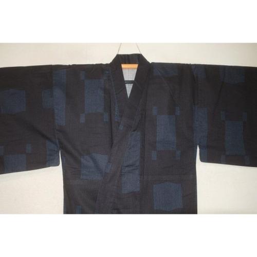 こちらのお品は、遠州綿紬の生地から仕立てた物です。状態は仕立て上がりです。ミシン手縫い併用のサンプルです。超光沢黒瑠璃色色地に平角と揺り角の染め絣文様。色味が難しいため現物優先でお願いします。染の濃淡は元からです。