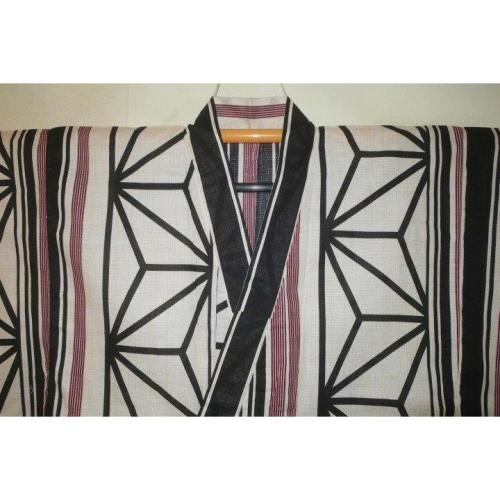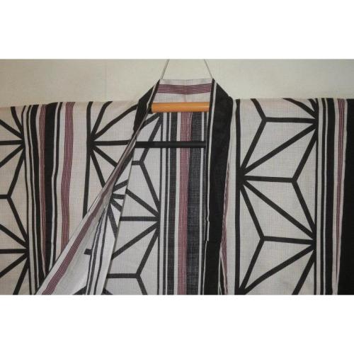 こちらのお品は、遠州綿紅梅の生地から仕立てた物です。状態は仕立て上がりです。ミシン手縫い併用のサンプルですが本格仕立てです。織は綿紅梅の紬の紗で織感も素晴らしい。縫いの手法が気になる方でも、これならいいと思います。私は問題ないと思います。長襦袢をつければ単衣に、つけなければ浴衣になります。滅多に出ない高級生地からの仕立てです。お見逃しなく。白系の麻の葉縞のすっきりした柄です。色味が難しいため現物優先でお願いします。