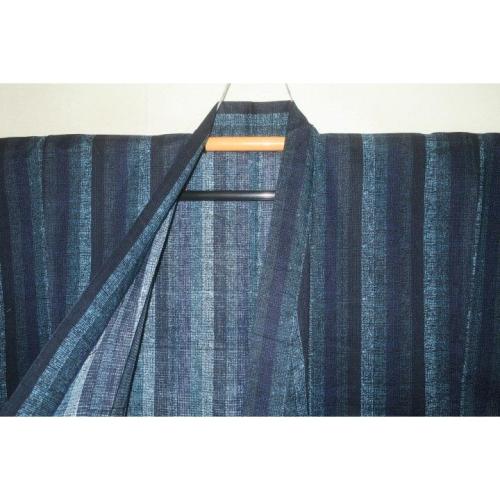 こちらのお品は、遠州綿紅梅の生地から仕立てた物です。状態は仕立て上がりです。ミシン手縫い併用のサンプルです。織は綿紅梅で織感も素晴らしい。超光沢のカツオ縞の暈しの絣縞。色味が難しいため現物優先でお願いします。染の濃淡は元からです。