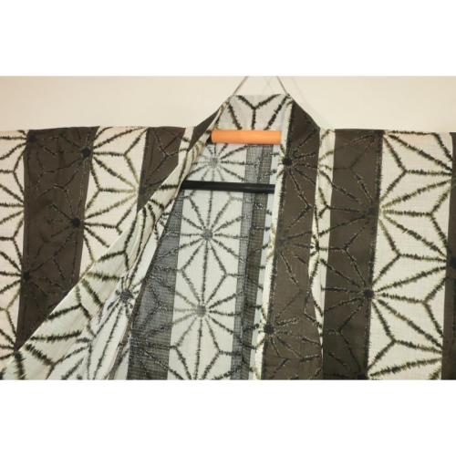 こちらのお品は、遠州綿紅梅の生地から仕立てた物です。状態は仕立て上がりです。ミシン手縫い併用のサンプルですが本格仕立てです。織は綿紅梅の紬の紗で織感も素晴らしい。縫いの手法が気になる方でも、これならいいと思います。私は問題ないと思います。長襦袢をつければ単衣に、つけなければ浴衣になります。滅多に出ない高級生地からの仕立てです。お見逃しなく。染め分け陰陽麻の葉葉縞のすっきりした柄です。色味が難しいため現物優先でお願いします。色は茶系と緑茶色の麻の葉のような色合いの柿渋色で、色味が難しいため現物優先でお願いします。