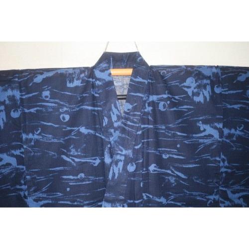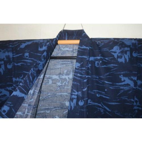 こちらのお品は、遠州綿紅梅の生地から仕立てた物です。状態は仕立て上がりでミシン手縫い併用のサンプルですが本格仕立てです。織は綿紅梅で織感も素晴らしい。縫いの手法が気になる方でも、これならいいと思います。私は問題ないと思います。長襦袢をつければ単衣に、つけなければ浴衣になります。滅多に出ない高級生地からの仕立てです。お見逃しなく。「幻の世界」から「蛍狩り」青地に影のような水辺の蛍の広がりを持ちます。色味が難しいため現物優先でお願いします。