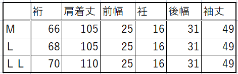 ▼サイズ展開はM〜LLの3サイズです。(画像のサイズ表をご確認ください。)