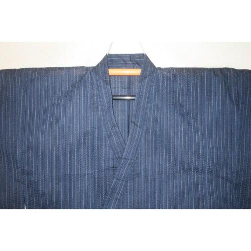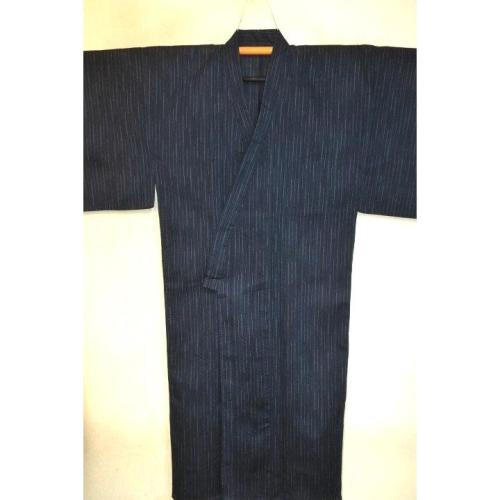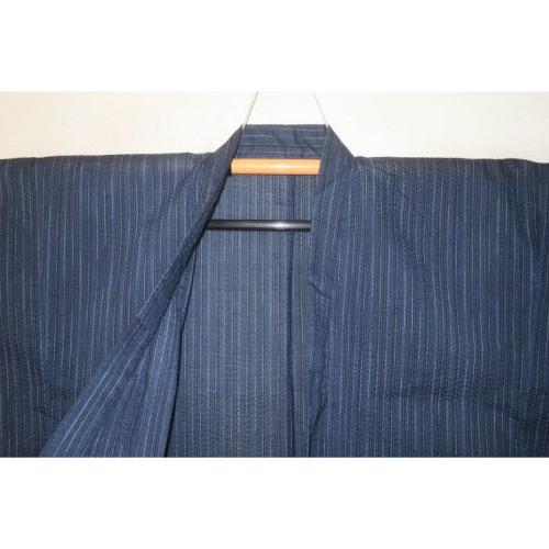 新しじら織・遠州織 男着物単衣 透かし織・藍紺の五月雨 皺になりにくくなりました 襦袢をつけて単衣着