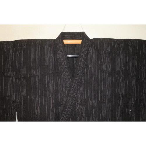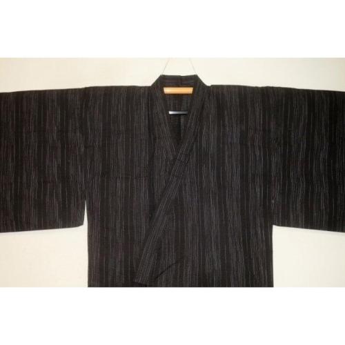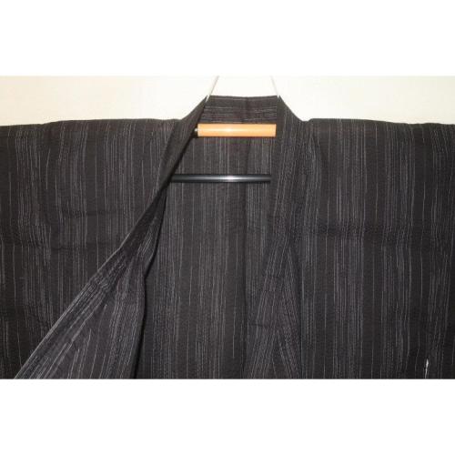 地色は黒色で五月雨縞の涼し気な織と色です。色味が難しいため現物優先でお願いします。