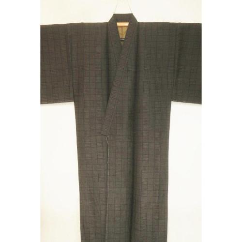 拾10243RM シルク化繊丹後縮緬調 男着物袷 裄70丈146К焦げ茶色濃淡・角通し千鳥格子文様