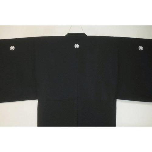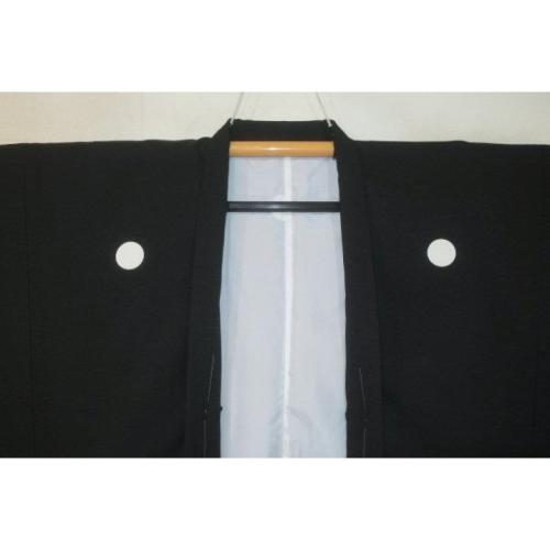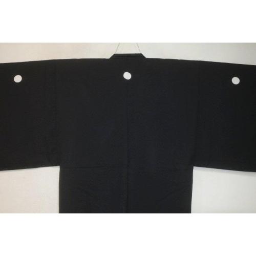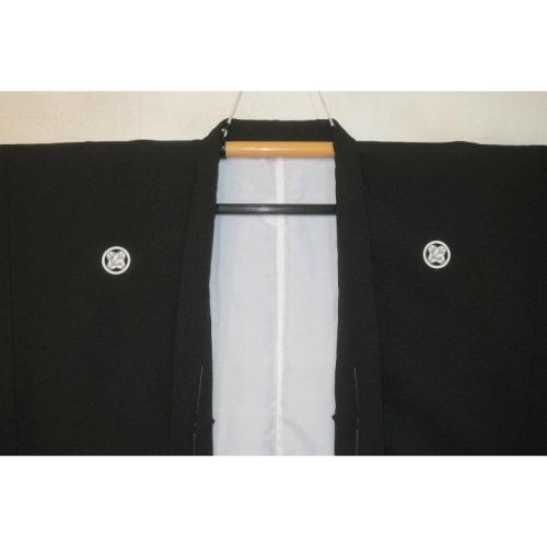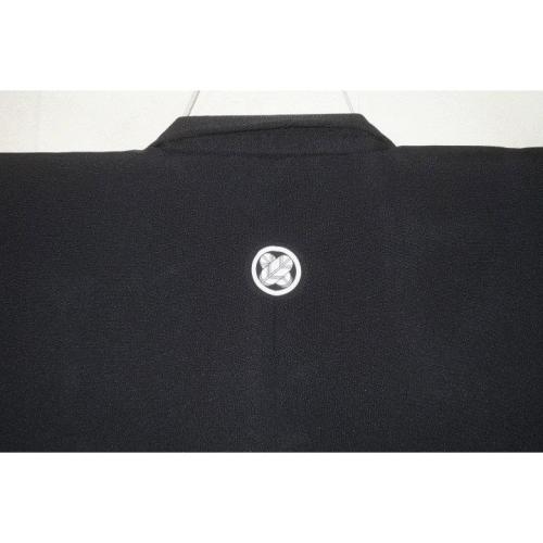 【羽織3サイズ】最高級化繊・ハイクラス洗える黒紋付・石持(こくもち)に染め抜き 男羽織 К