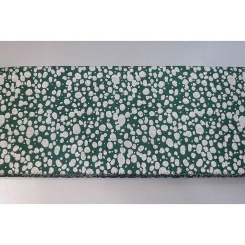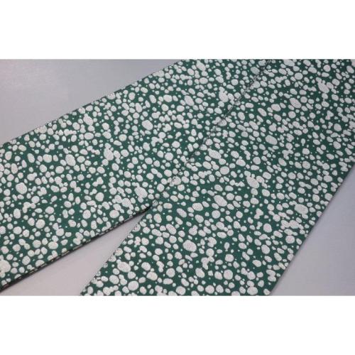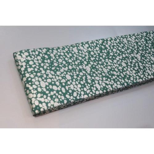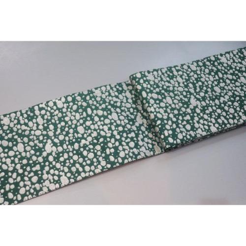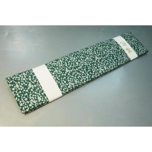 こちらのお品は、本絹西陣織樹脂箔の角帯です。全通の青緑色地で曜変天目文様の染め分けになっています。色味が難しいため現物優先でお願いします。