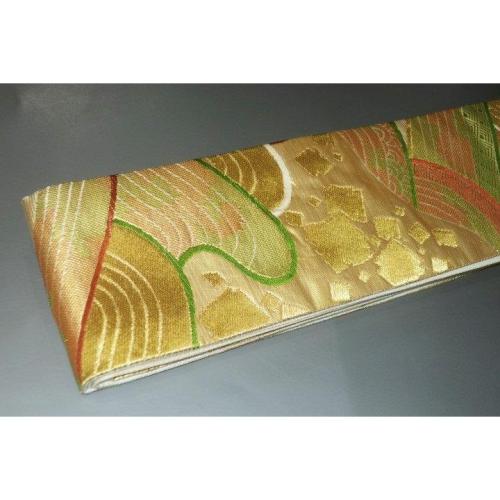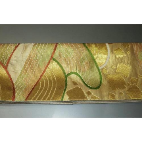 弐11085RM 男角帯 本絹西陣錦唐織 К沈金色地・金襴練貫 切り箔と沖波の図 極上新品 金属糸使