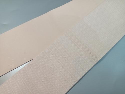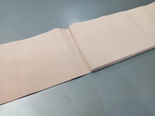 こちらのお品は、高級化繊若狭織の角帯です。色柄は桜芭蕉色の鎧段違い文様です。色味が難しいため現物優先でお願いします。