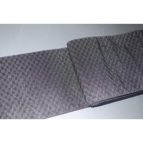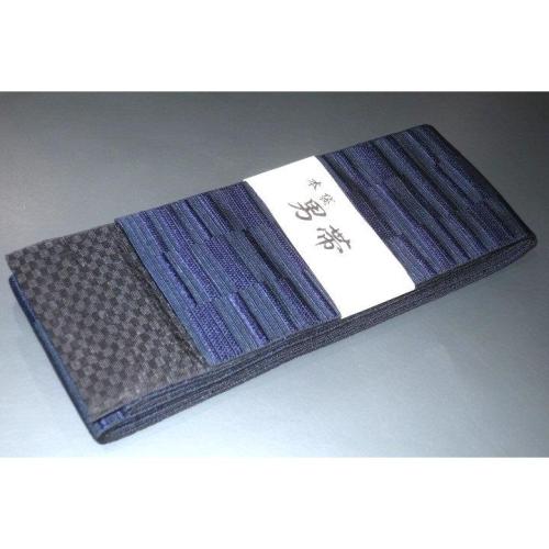 こちらのお品は、高級化繊桐生織の角帯です。色柄は表は藍紺色の鎧段違いで、裏は墨黒の市松文様です。色味が難しいため現物優先でお願いします。