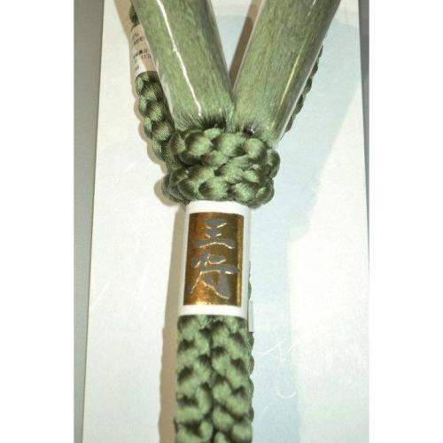 【44番】男性羽織紐・本絹組紐 К銀色がちの抹茶色 ※限定色 日本製