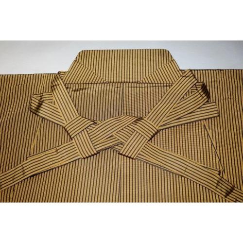 拾袴10311 本絹西陣織馬乗仕舞袴 紐下83К金茶に黒の棒縞 中古極美品 能楽仕舞用