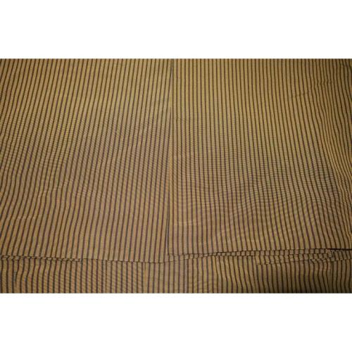 こちらのお品は、本絹西陣織の仕舞仕立ての馬乗袴です。襠がやや浅めで外襞が留め縫いされています。色は金茶色の棒縞。腰板のヘラはありません。色味が難しいため現物優先でお願いします。