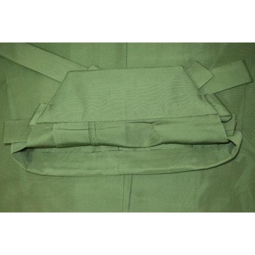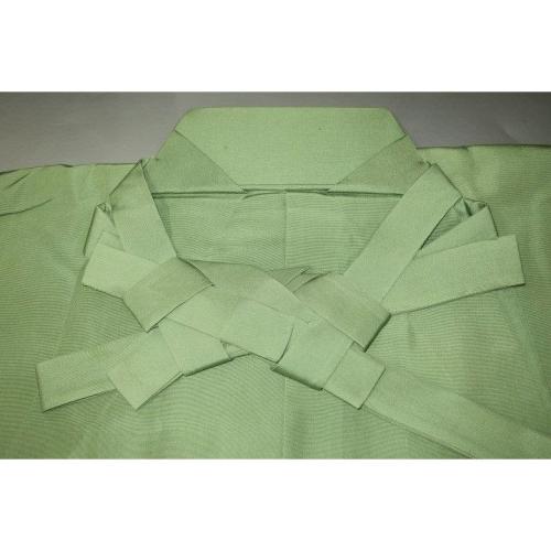 こちらは本絹西陣織の仕舞型の馬乗袴です。襠がやや浅めで外襞が留め縫いされています。色は若緑色の無地。色味が難しいため現物優先でお願いします。