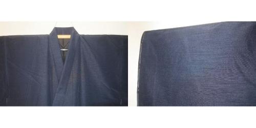 弐11202RM シルク化繊お召調 男着物羽織 裄74丈145К濃紺鉄紺・無地感の霞織 新品 茶人好