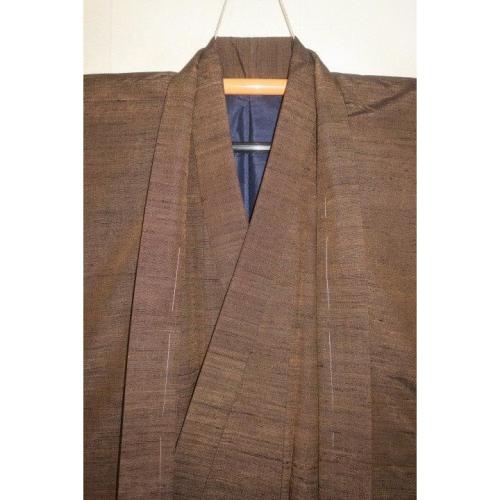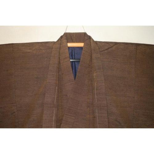 弐11220 本絹秩父銘仙 男着物羽織 裄67丈138К褐色の粗細 絶品 証紙付き 新品 秩父逸見織
