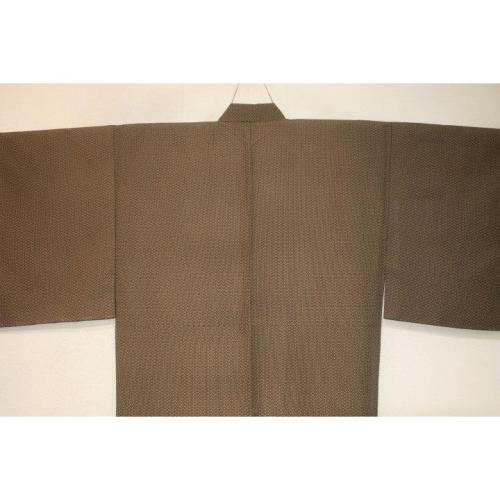 拾11249RM シルク化繊丹後縮緬調 男着物袷 裄71丈148К金茶色地の毘沙門亀甲文様 洗える江