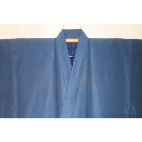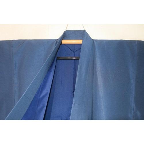 こちらのお品は、シルク化繊丹後縮緬調のお召の袷の着物です。ミシン手縫い併用の呉服仕立ての新品です。着物のみです。化繊の染物調ですが、本絹並みです。むしろ本絹より扱いやすいかもしれません。青灰色の無地感で少し横の織があります。裏は平絹に化繊のサテン地で八掛のような胴裏の仕上げです。色味が難しいため現物優先でお願いします。状態は当社で仕立てた新品のサービス出品です。お洒落男子の洗えるいい着物如何でしょうか。一点物。