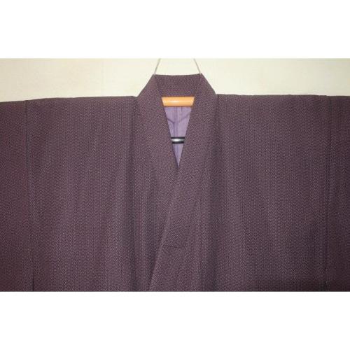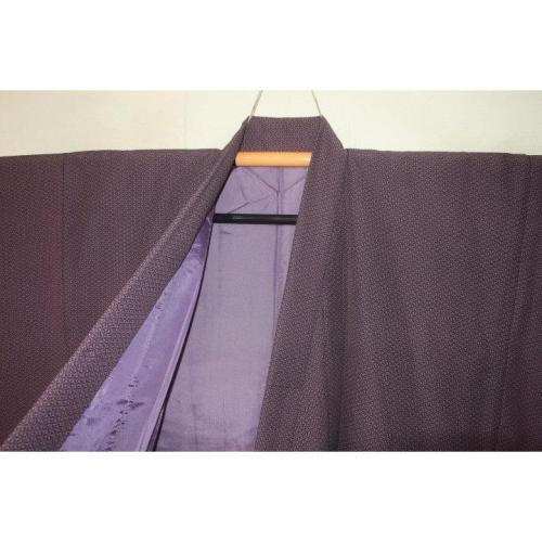 こちらのお品は、シルク化繊丹後縮緬調の江戸小紋の袷の着物です。ミシン手縫い併用の呉服仕立ての新品です。着物のみです。化繊の染物調ですが、本絹並みです。むしろ本絹より扱いやすいかもしれません。江戸小紋・桜ネズ・藤紫色の毘沙門亀甲です。裏は平絹に地下化繊のサテン地です。色味が難しいため現物優先でお願いします。状態は当社で仕立てた新品のサービス出品です。茶人の皆様ばかりでなく、洗えるいい着物如何でしょうか。一点物。