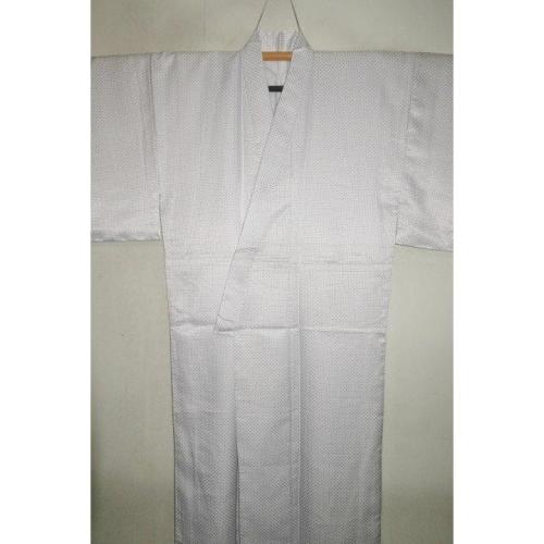 拾11279RM シルク化繊丹後縮緬綸子調 男着物袷 裄70丈149К白地の四ツ目絞り織文様 洗える
