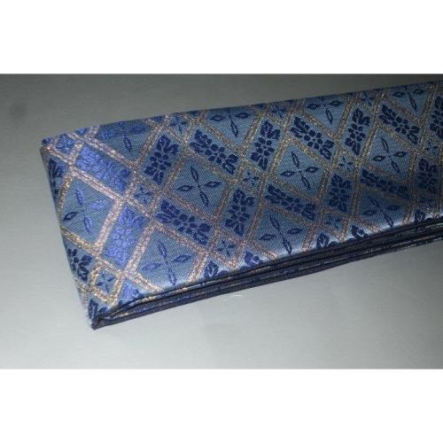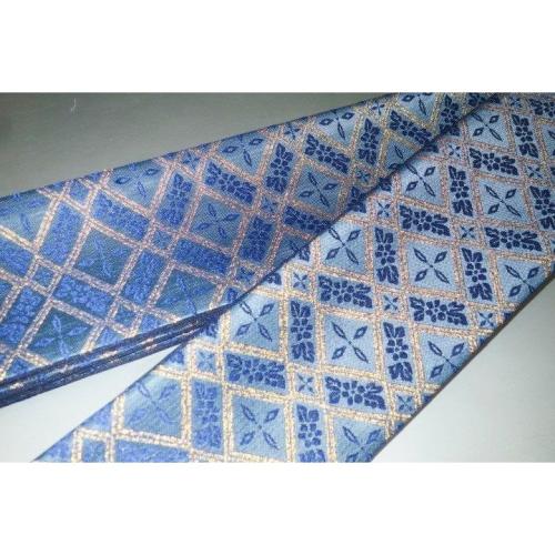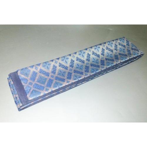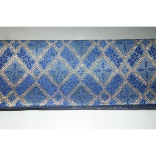 こちらのお品は、シルク化繊絹交ぜ織り金襴西陣織の角帯です。色柄は青灰色地に大小業平桧垣文様です。色味が難しいため現物優先でお願いします。
