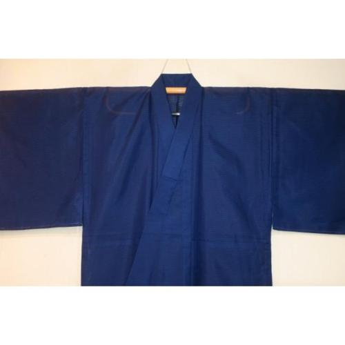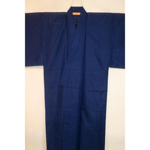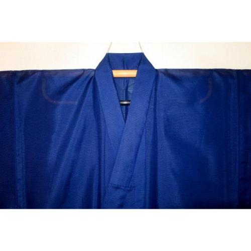 こちらのお品は、弊社で仕立てました化繊平絽の着物単衣です。色柄は藍瑠璃色の無地です。色味が難しいので現物優先でお願いします。織は化繊平絽で、ポリエステル100%のため家庭でも洗えます。